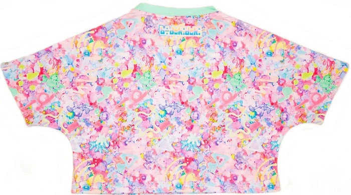 This Kawaii Cropped Mini Tee includes iconic imagery from the rave scene; neon mushrooms arranged in a pop design.