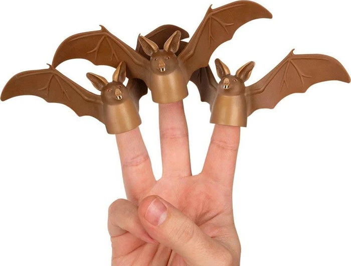 If we didn’t have bats, the world would soon be overrun by insects. A single bat can eat 600 mosquitos in an hour! Soft vinyl bat finger puppets are posed in a mid-flight swoop for all kinds of nocturnal adventures. If you’d like, you can just imagine that your finger puppet is a vampire in bat form, you do you..
