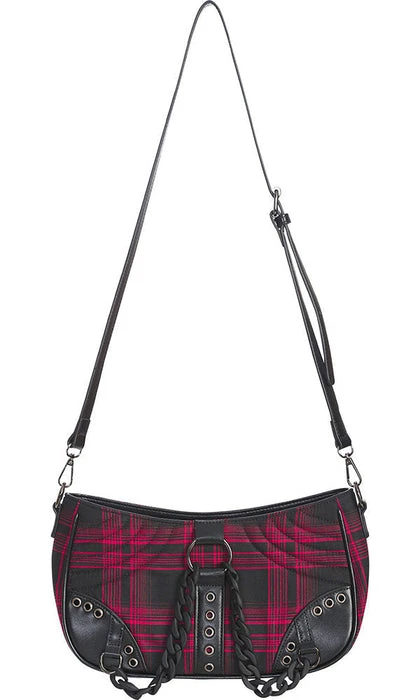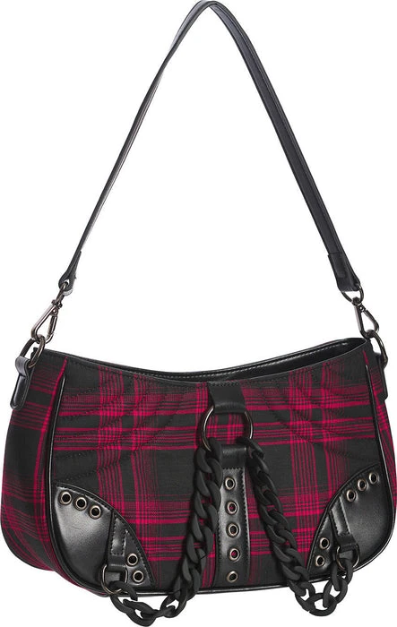 Wanting a super grunge yet practical handbag to fit all your necessities? Well the Earthworm chain handbag is just what you need! This stunning black and red tartan handbag has the coolest chain and eyelet details perfect to add a little bit of gothic flair to your casual outfits with no extra trouble!