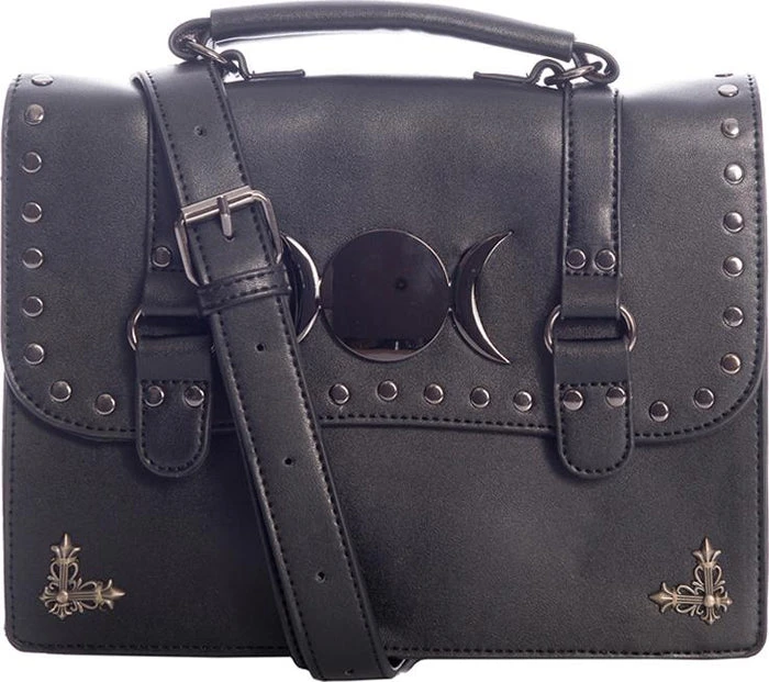 This incredible cross shoulder bag features a triple moon ornament design on the front, adjustable straps and back zip pocket!