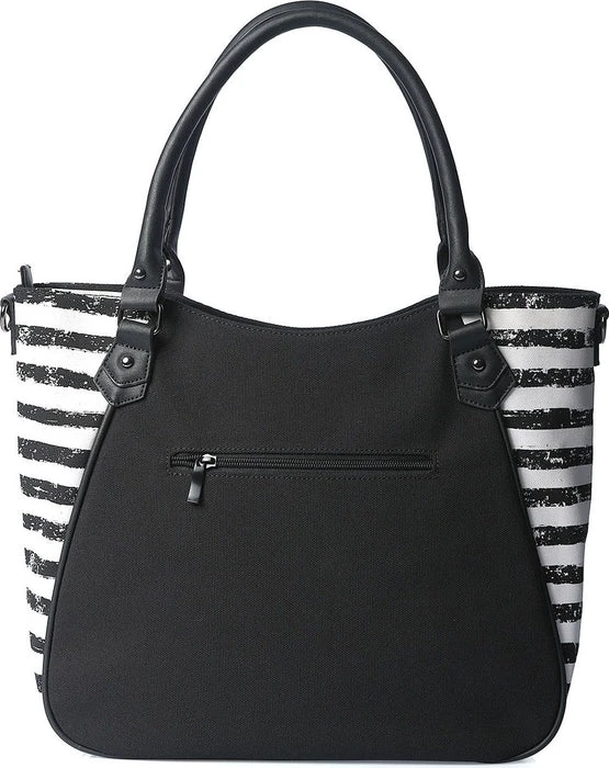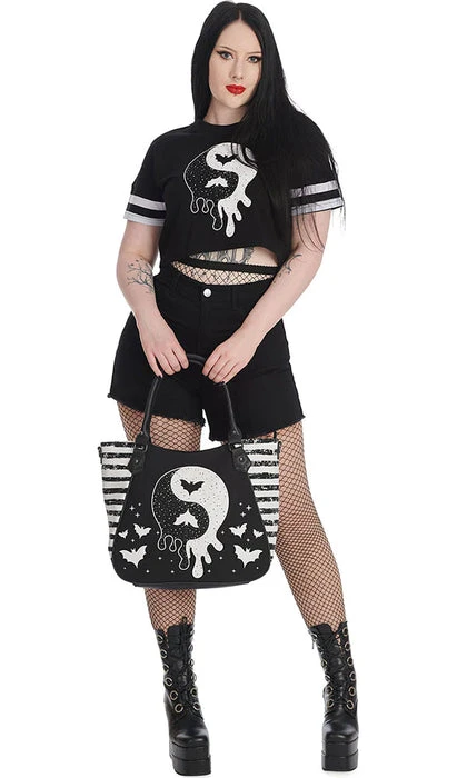 Add some Zen to your accessories with the batty Yin Yang master tote.
