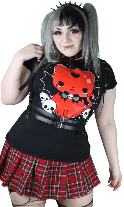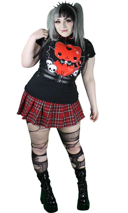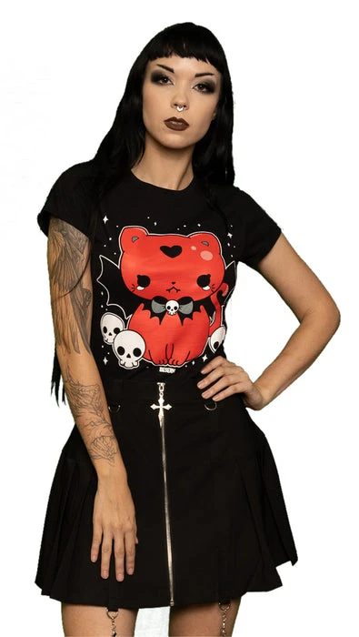 Spooky and Cute?! This top is made from super soft cotton, slim fitting and top quality! Features a bold graphic screen print that is part gothic, part kawaii, and all killer!