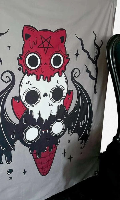 Introducing the I Scream Parlour Tapestry Blanket from the mystical label Beserk Crypt, a blanket that will cast a spell on you with its haunting yet whimsical design.