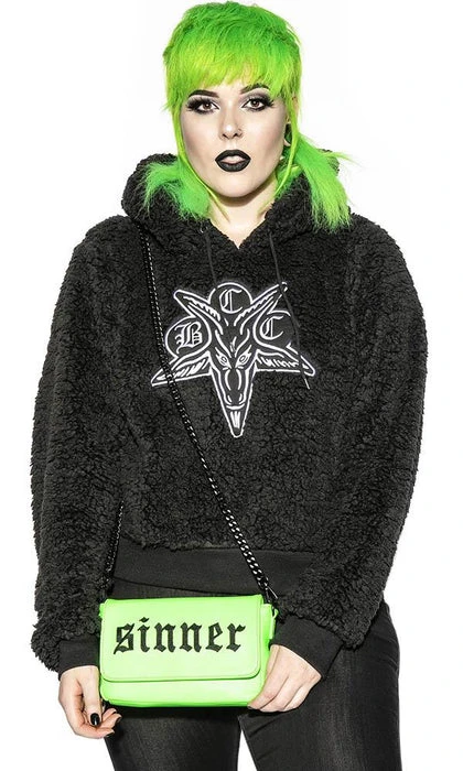 Don’t compromise style to keep warm! Stay cosy and cute in this cropped Black Sherpa Hoodie. Soft to the touch, you’ll be snug all Winter!