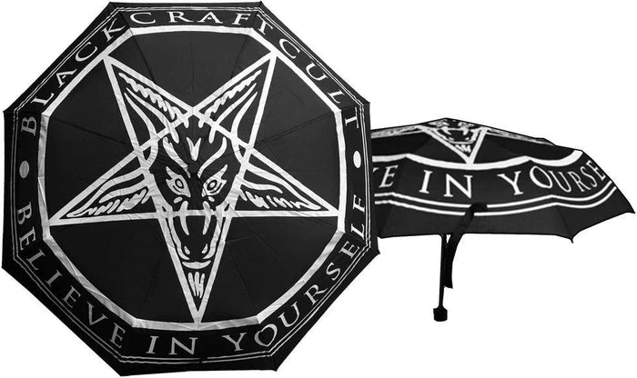 Dive head-first into the occult with the Pentagram Umbrella by Blackcraft Cult. Featuring the mythical Baphomet, this umbrella is to die for.