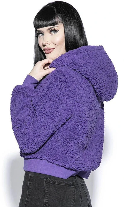 Don’t compromise style to keep warm! Stay cosy and cute in this cropped Purple Sherpa Hoodie. Soft to the touch, you’ll be snug all Winter!