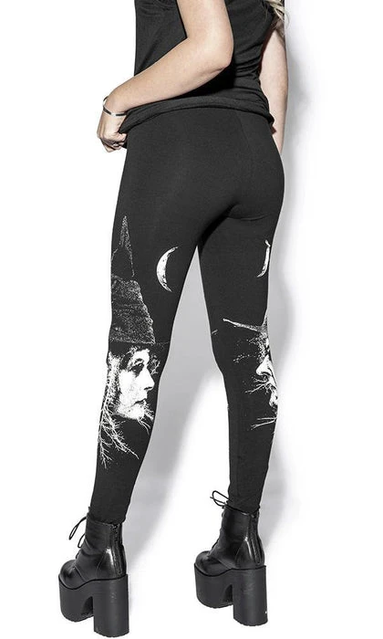 Looking for your next set of lethal leggings? These bad girls feature a soft water-based print of a pair of witches, the two alternate personalities in one, with simple crescent moons and the blackcraft logo over both legs.