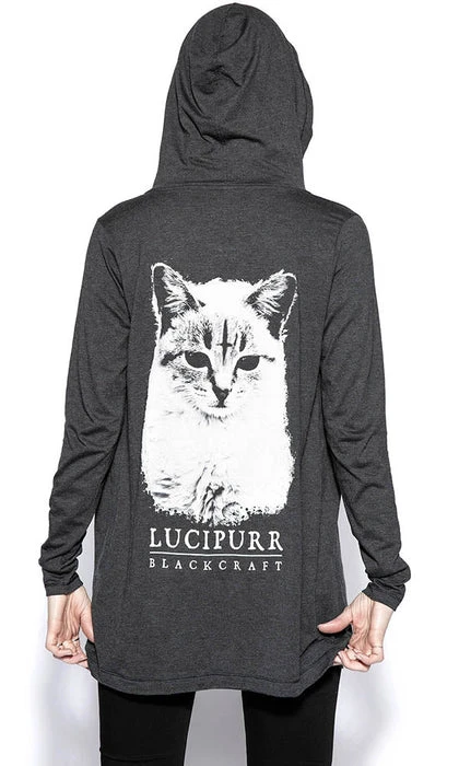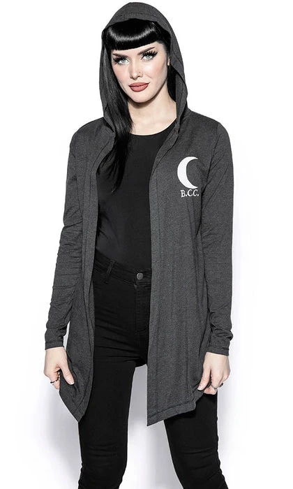 Women’s Lucipurr Cardigan from Blackcraft. This charcoal cardigan looks killer with skinny jeans and a printed tee.