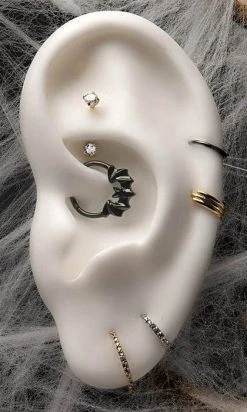 1.5mm Clear CZ Huggie with Clear CZ Crescent Moon Dangle Earrings.