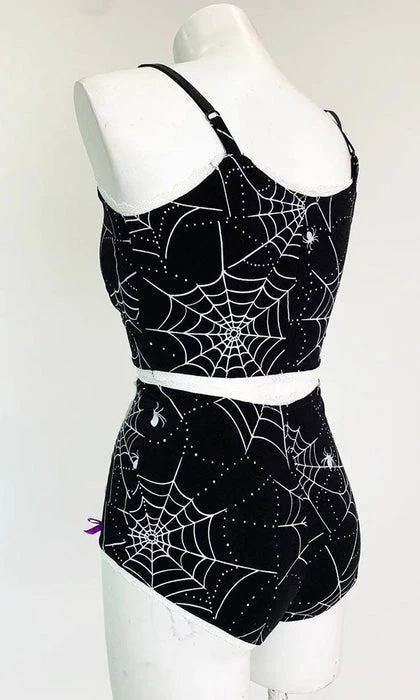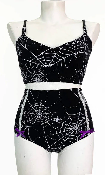 Slip into some spooky time with this gorgeous, spiderweb printed, intimate set. This dark & dreamy twinset, will have you feeling wickedly, wonderful from the underwear – out! It’s great as intimate wear or snuggle it into bed for the best dreaming ever.