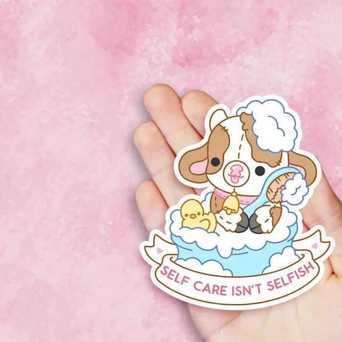 Self Care Plushie Pal Vinyl sticker to make any surface extra cute & remind you to love yourself!