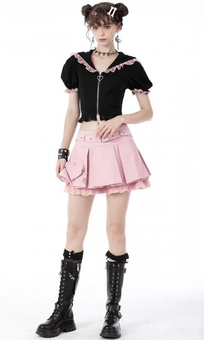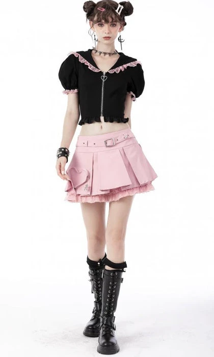 Life’s too short for boring clothes! Make a statement in the Devotion Skirt! Pair with fishnets and knee high boots for a kawaii look.