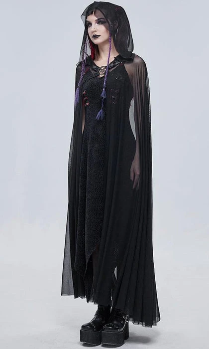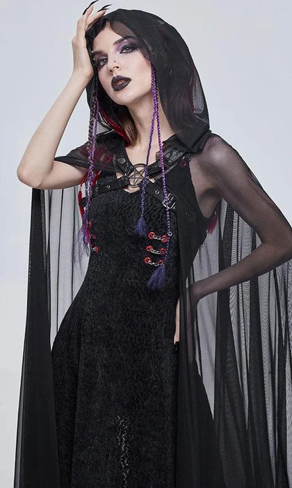 Weave through the night and blend into the darkness, shrouded in mystery and despair. Pair with a black fitted dress and boots for the ultimate goth look.