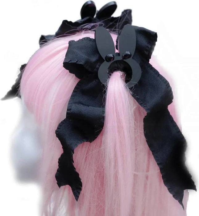 Add a little touch of goth this Easter with the Black Rabbit Twin Tail Hair Bows! These super kawaii bows are a must have to your accessory collection.