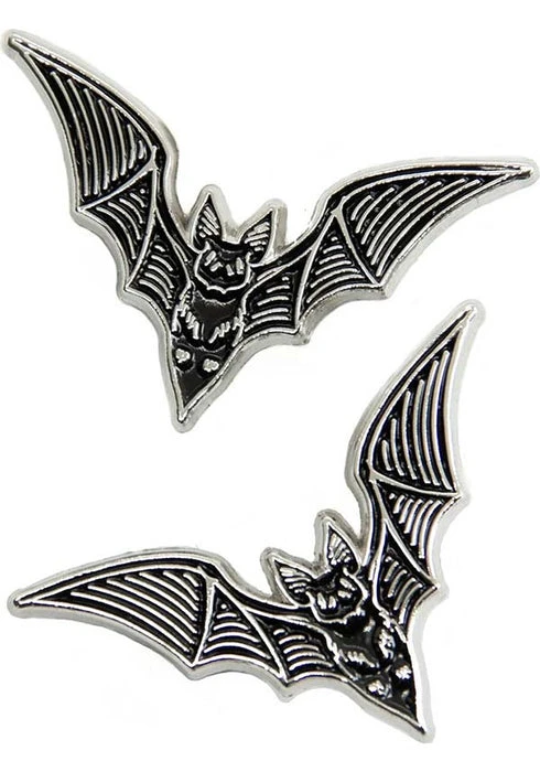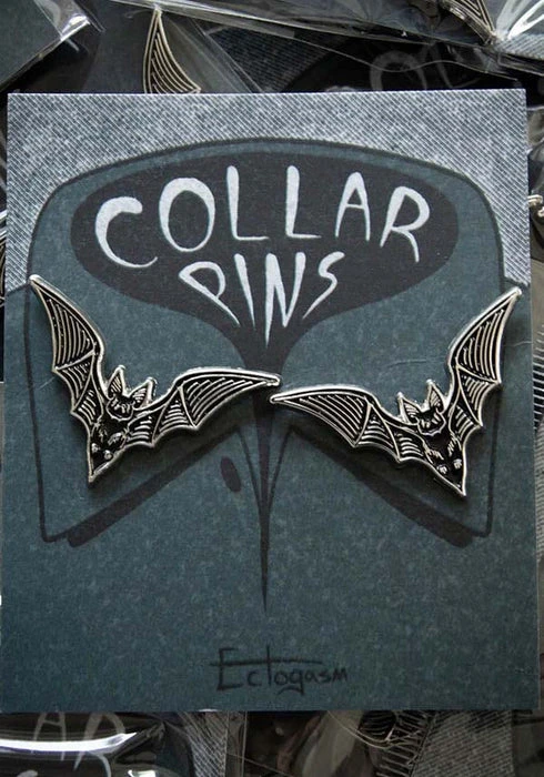 These bat enamel pins give spooky flair to the collars of any jacket or shirt. Made in fine detail, the pins are drawn with Ectogasm’s signature etching style. They make a unique accessory for dark fashion.
