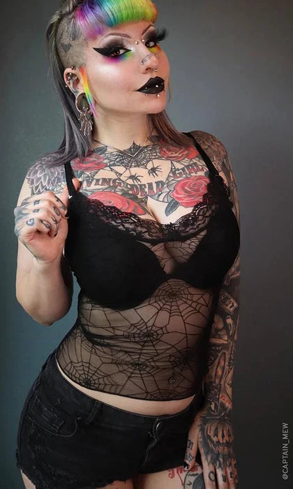 A Sheer spider web dream, you will love this Top! The material has plenty of stretch and is very comfortable.