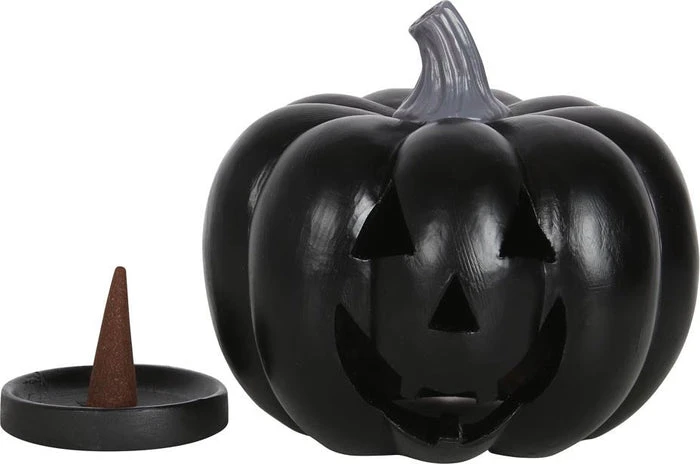 This jack-o’-lantern incense cone holder features a solid black finish that’s great for both Halloween and year-round gothic decor. Simply place a smoking incense cone in the holder and watch as smoke emerges from the pumpkin’s toothy grin.