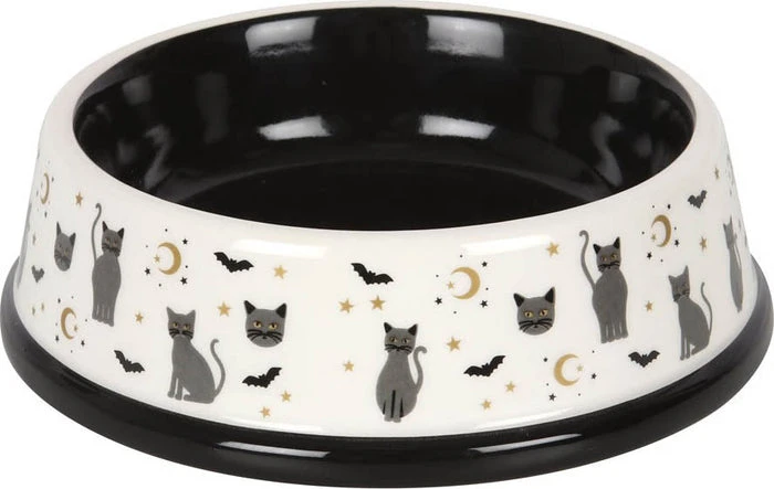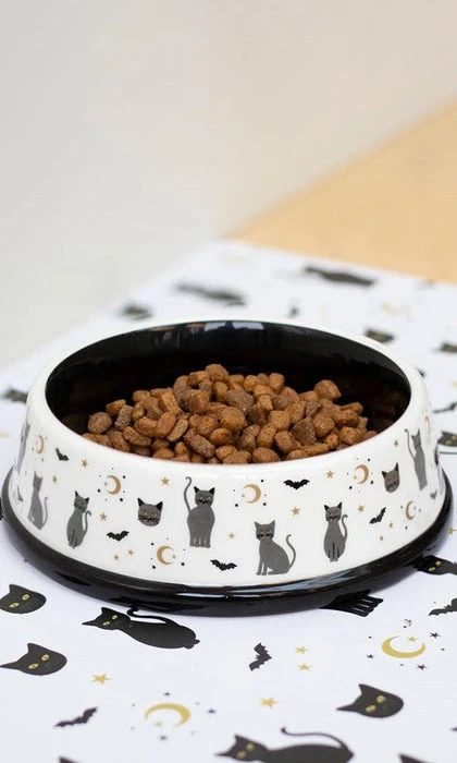 This bewitching food bowl features an enchanting mix of black cats, bats and mystical half moons. Perfect for the magical cat or dog in any home.