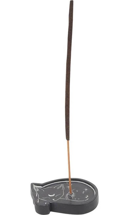 This black resin incense holder comes in the shape of a mystical sleeping cat and is compatible with both incense sticks and cones. Makes a great gift and addition for gothic, witchy and alternative homes.