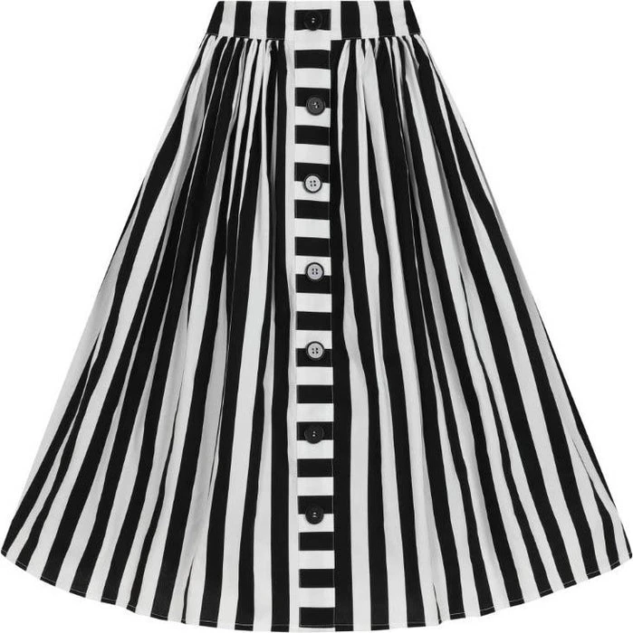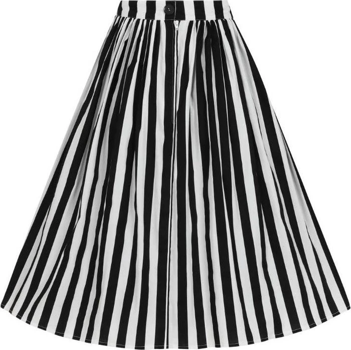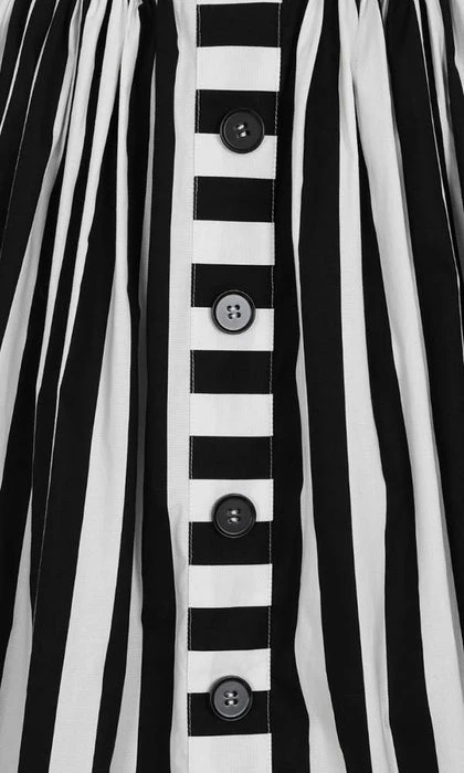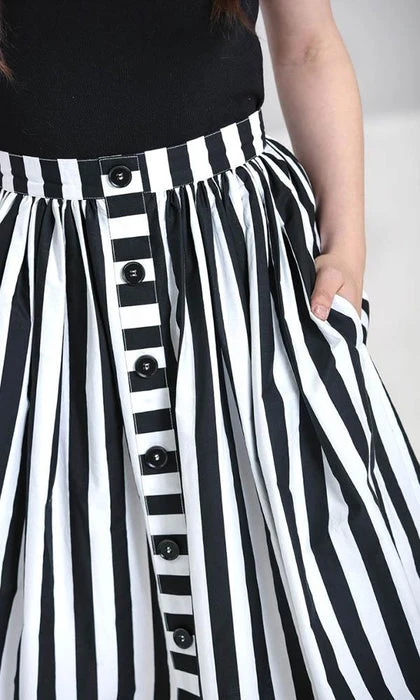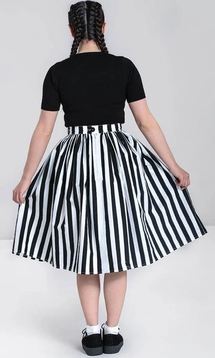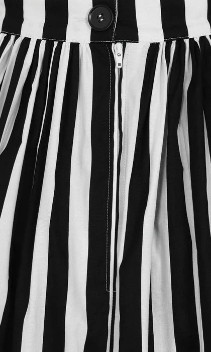 Update your spooky wardrobe with this Beetlejuice-inspired monochrome stripe Juno 50’s Skirt.