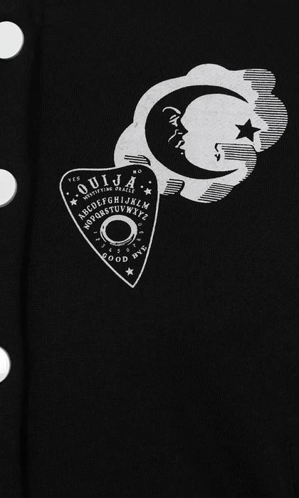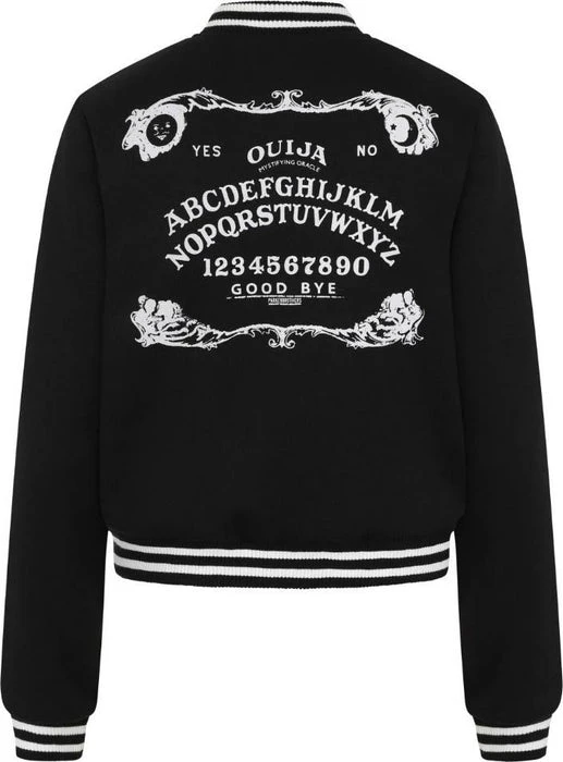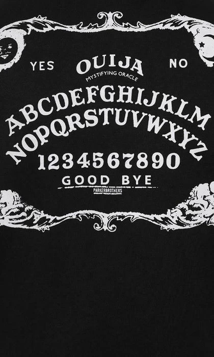 – Ouija symbols on front chest and across the back