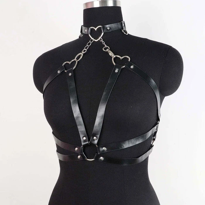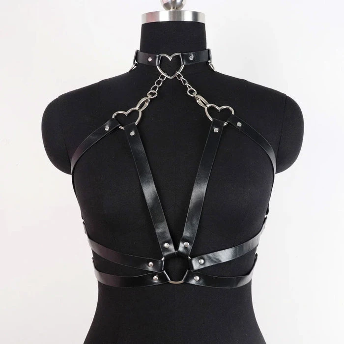 Hey lover~ Wanting to look fierce and kawaii at the same time? The Astaroth harness has got you covered! This sexy black faux leather harness features the cutest silver hearts and chains making this the perfect closet staple!