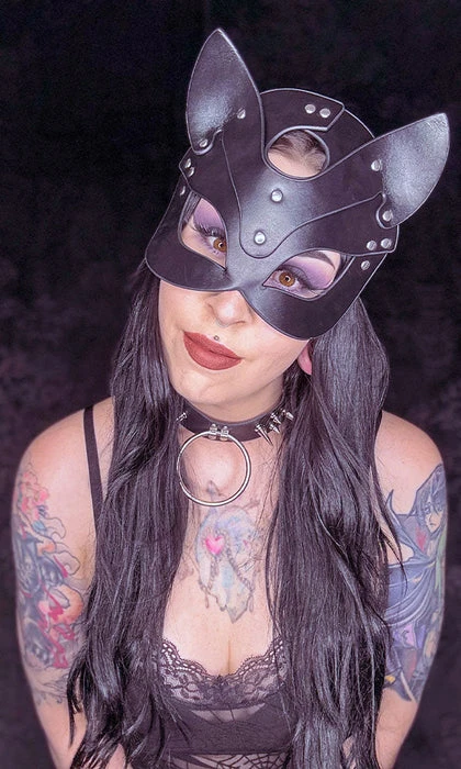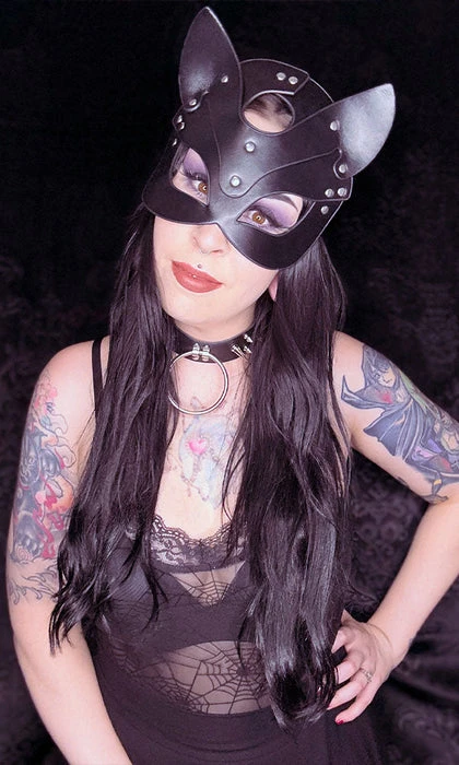 Come come kitty ~ Unleash your inner beast with the Black Bakeneko mask! This sexy faux leather mask features the cutest little ears and silver statement studs all over! Perfect for cosplay, Halloween or anything else you desire!