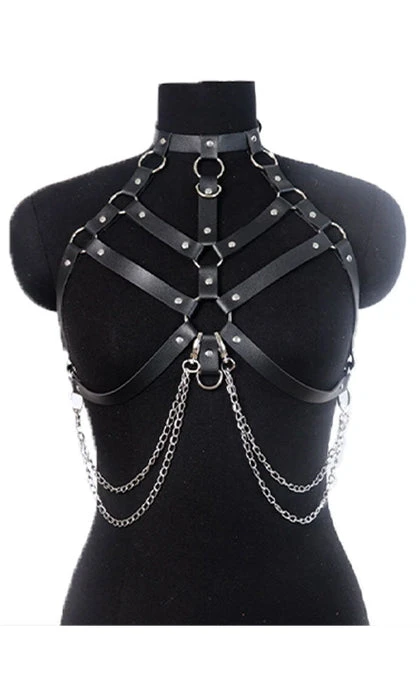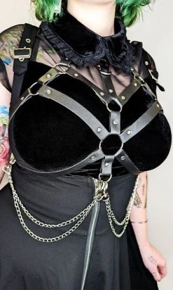 Worship me ~ Be as hot as hell in the sexy Baphomet harness by Hellbound! This stunning studded and chained faux leather harness is perfect for accessorising your favourite alternative outfits or anything else you desire!