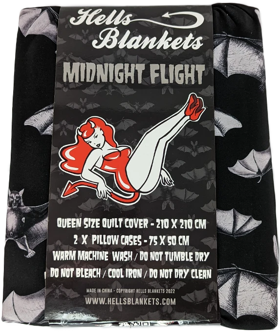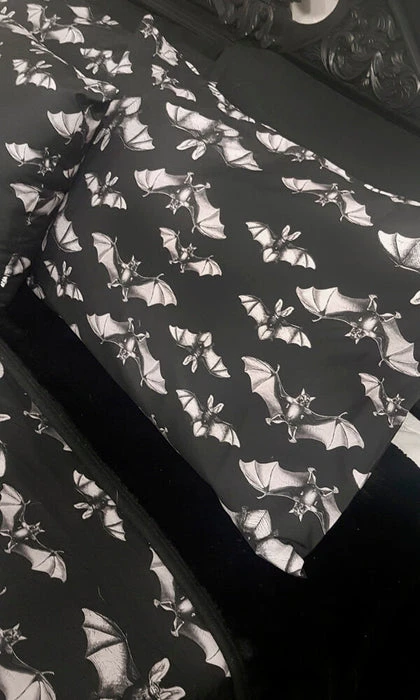 The Midnight Flight Quilt Set brings spooky and macabre vibes to the bedroom. Featuring an all over dark bat design – perfect for anybody who likes to doze on the deadly side!