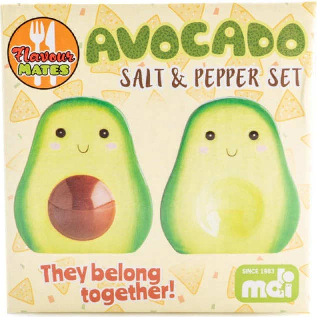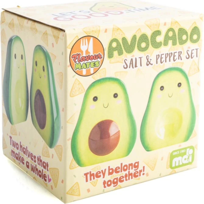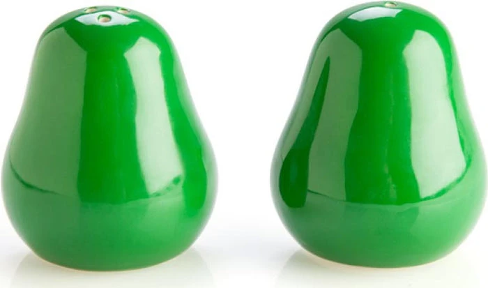 Cute ceramic salt and pepper shakers shaped like two halves of an adorably delicious avocado! One half fits perfectly into the hollow on the other half. Put them together to create a whole avocado!