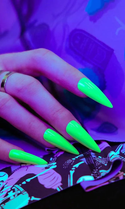 Run for your life! Opaque neon green with a twist.. it glows in the dark (under UV / black light).