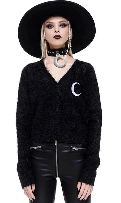 Look cute as hell in the Crescent knit cardigan; in a soft knit jersey for a comfortable and flattering fit. Features a button up front and long sleeves. Complete with a V neck and crescent moon detail. Super versatile and easy to style, ideal for layering and perfect for any cold day of the week!