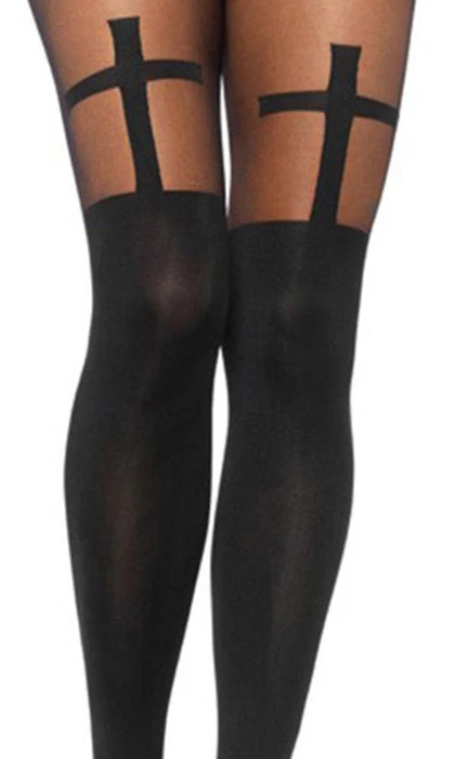 Look like a vision in the Bless Me Cross Tights by Leg Avenue. These stunning tights feature premium, super soft materials and a cross accent on the thigh that’s perfect for pairing with sexy lingerie or a Halloween costume. A sure favourite in your collection!