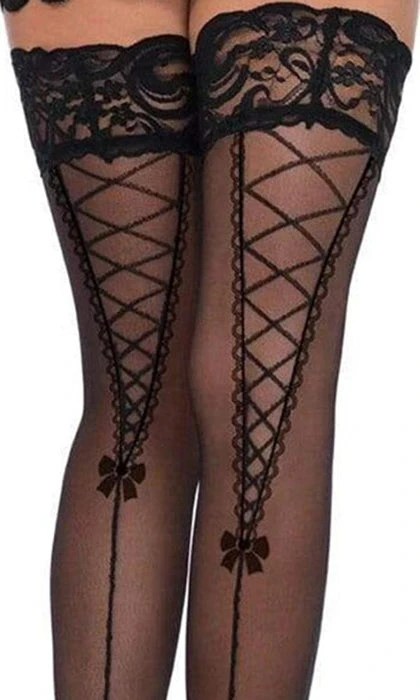 Be always on trend in the Rose Lace Thigh High Stockings by Leg Avenue. This sexy, flirty pair of stockings is the perfect alternative to women’s hosiery. Pair this versatile piece with sexy lingerie, a girl’s night look for a jaw-dropping look.