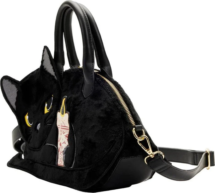 Celebrate the magic of All Hallows’ Eve with the Loungefly Hocus Pocus Binx Holding Candle Crossbody Bag. Taking the shape of this spellbound accessory, Thackery Binx has been transformed into a soft, plush black cat as he curls up next to the Black Flame Candle.