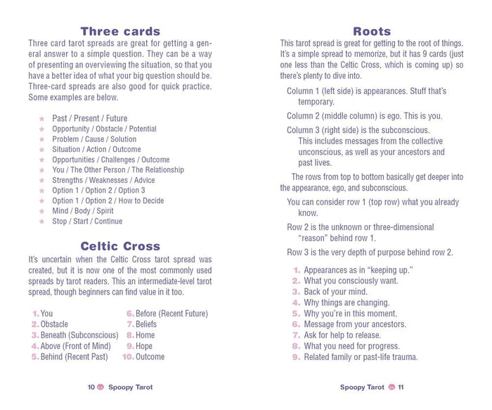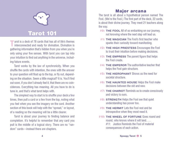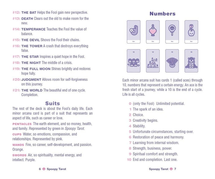 Spoopy Tarot is a kawaii treat for all the spooky season tricksters, featuring the classic tarot deck reimagined with cute li’l ghosts, nasty witches, and other fun stuff that goes bump in the night. Instead of the fool’s journey, Spoopy Tarot follows a spirit floating through a haunted house, encountering 78 extremely cute versions of traditional tarot archetypes in the major and minor arcana.