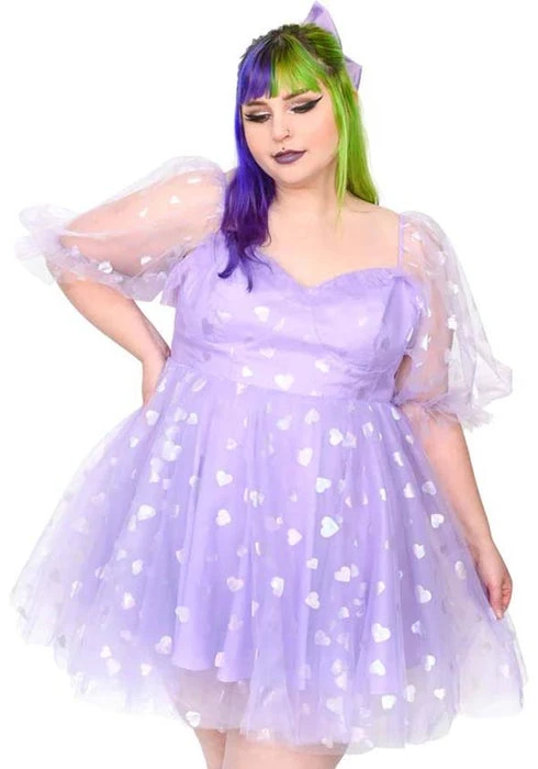 Materials: Lavender tulle with iridescent/holo hearts over a soft solid lavender fabric.