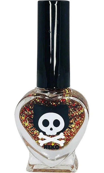 Tip: Glitter based polishes look best when painted over a darker coloured base polish! Take a look at the images above for style examples! (Please Note: The images show this glitter polish painted over the top of a black nail polish). Always start off with a Base coat to prep the nails, shake the Neko Nail Cult bottle well, apply 2 coats and finish off with a clear Top Coat for the best results!
