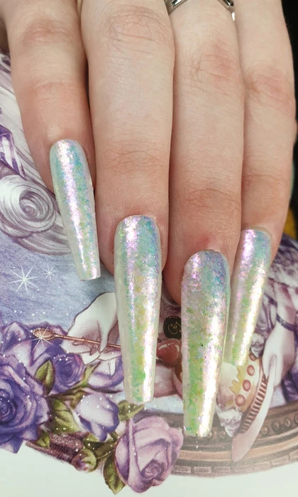 If looks could kill, this shade would massacre! Yuki is the prettiest iridescent pastel pink ‘snow’ glitter shade to ever grace the Earth! All different colours can be seen in the glitters which makes your manicure POP even more than it did before! Pro Tip – To achieve a full coverage glitter layer, apply using the sponge technique!