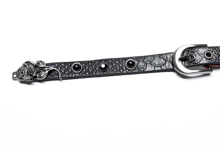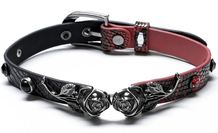 – Three-dimensional rose buckle on the front choker