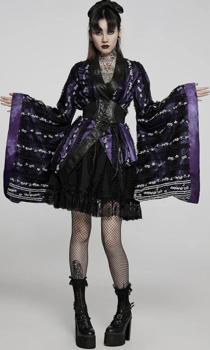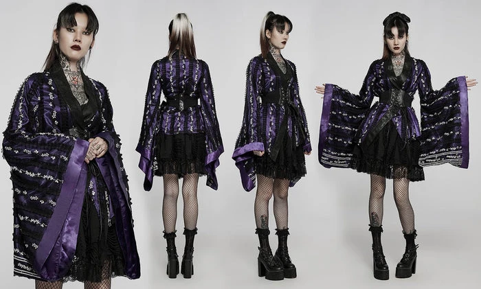 Wander and capture the hearts of those around in this exquisite kimono. The large black bow can be used as headwear or as decoration on the coat to enrich the outfit. This beautiful kimono will look incredible with a black skirt and some Mary Janes!