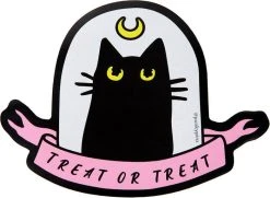 No tricks! I am not one who is easily fooled. Treats only please. Die cut vinyl sticker, perfect for your laptop. Featuring cute cat Treat or Treat design, and professionally printed.