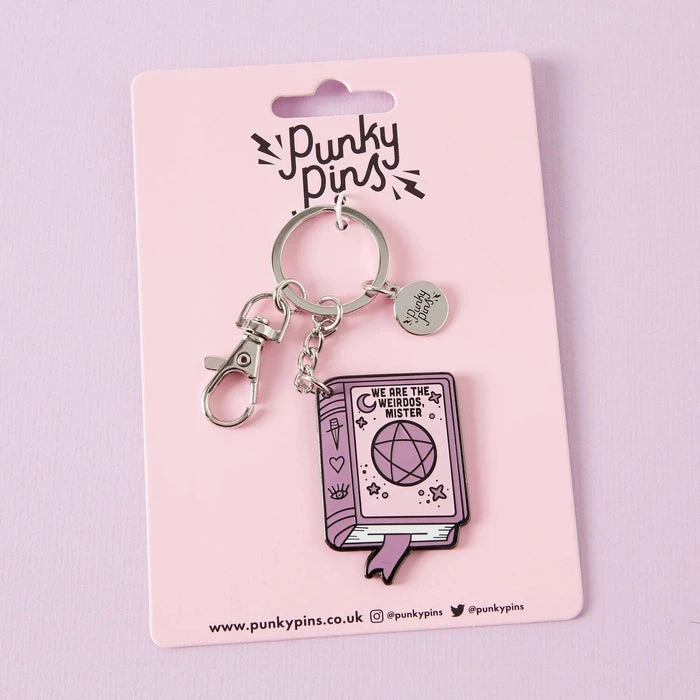 Hard enamel keyring on large split-ring with Punky Pins logo tag and spring snap clasp.