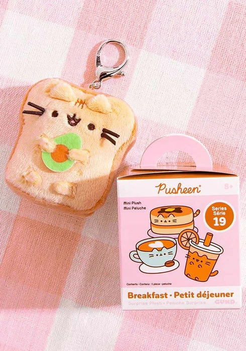 Unbox with Pusheen for the most important meal of the day! This series of miniature plush toys features the adorable internet sensation tabby as all your favorite breakfast foods, from squishy pancakes and avocado toast to colourful bowls of cereal, juice, and coffee to start the day off right. Collect all eight, including Waffle, Pancakes, Coffee, Cereal, Bagel, Avocado Toast, Orange Juice, and a rare mystery style! Each plush includes a metal keychain with a lobster clasp for easy detaching.