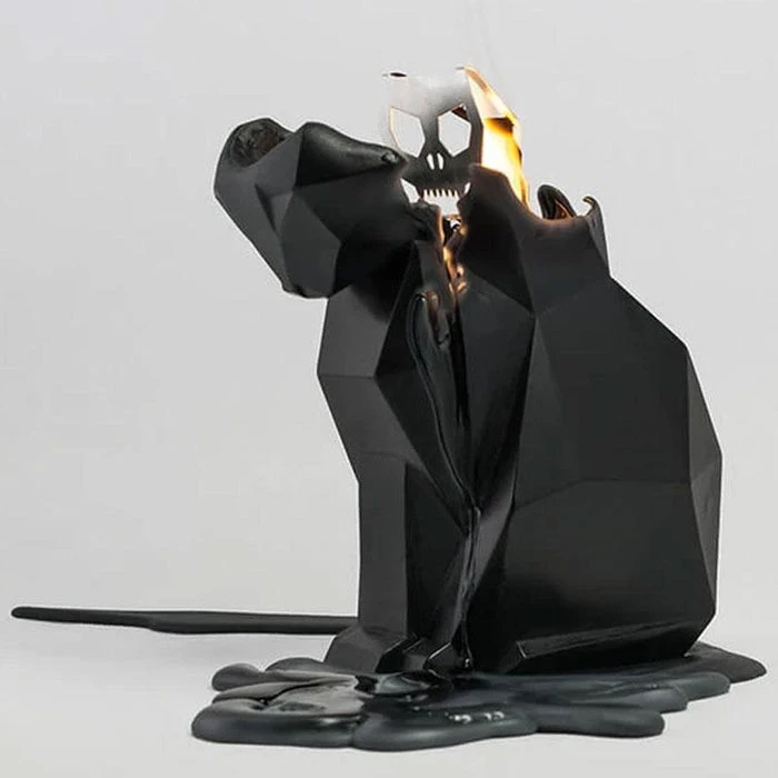 This cute cat shaped candle reveals the wild beast inside her, a grinning metallic skeleton with fire blazing in her eyes! Purrfect for a thoughtful gift or a meaningful, mystical additional to your home.