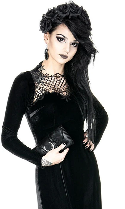 Elegant, long wallet with bat wings and metal moon statement hardware adorning the front. Made of solid and firm, faux leather with strong texture, this bad girl opens and is fastened with a snap button. Main three compartments are on the inside for bank notes, and one zipped for coins. Also many compartments for business cards. Perfect for every gothic girl who loves cute things.