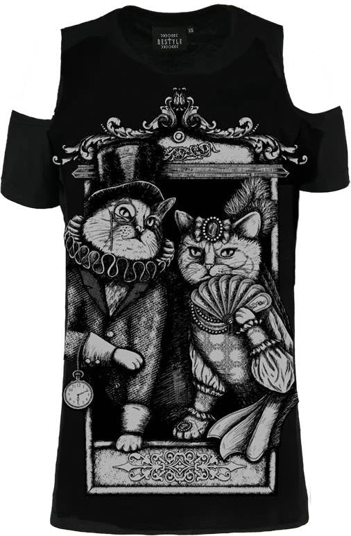 Prove them wrong with this stunning black t-shirt featuring the cutest old-fashioned cat couple you will ever see!