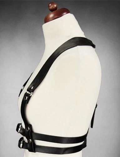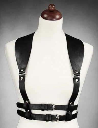 This steampunk inspired, under bust harness features silver buckles, wide shoulder straps and double belts at the waist, all of which are adjustable. It looks fantastic worn over tops, blouses, dresses or corsets.