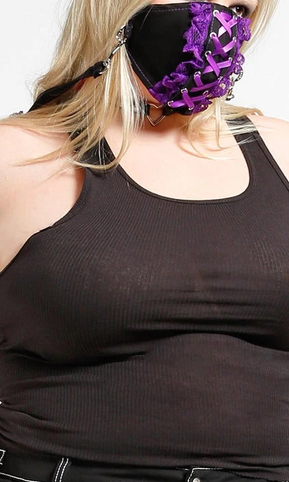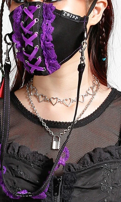 The ultimate Punk Lolita Face Cover! Featuring stunning Purple and Black, Lace, detachable strap and metal hardware.