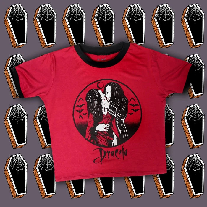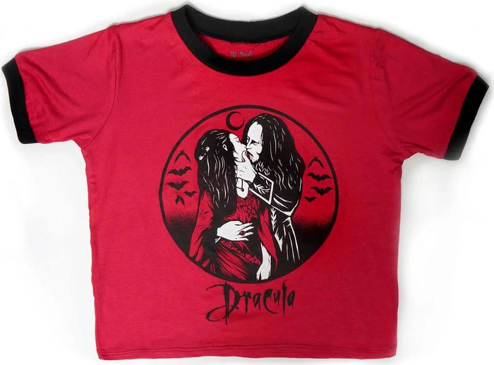 A cute take on Dracula and KISS, this soft and lightweight cropped shirt will make you look, and feel awesome! Pair this with ripped jeans and combat boots for a super cute, casual look.